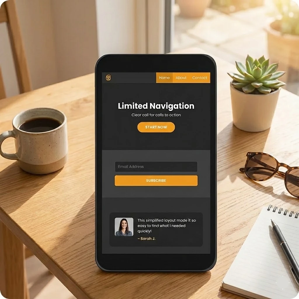By minimizing navigation options, we keep users focused on the primary goal—conversion.